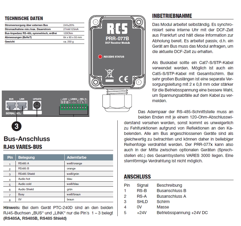 - 1x DCF-77 Funkempfänger mit 5-Klemmen ( Anschluss z.B. über Cat Kabel )