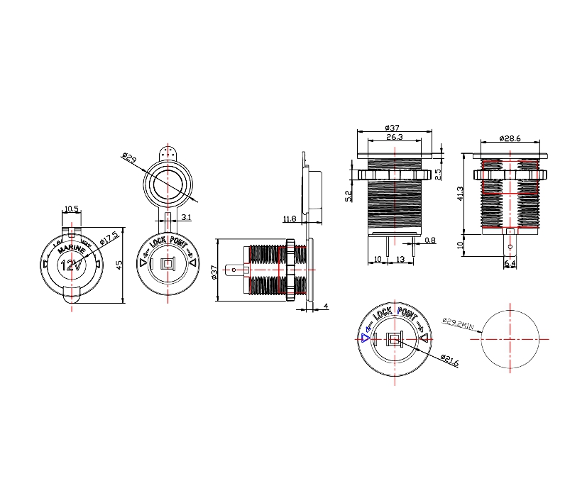 Produktinformationen "KFZ Dose Zigarettenanzünder IP65 Marine KFZ Einbaubuchse mit Abdeckung 15A KFZ Buchse"