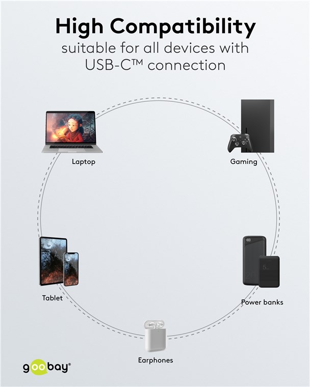 - USB-C™-Kabel mit High-Speed-Datenübertragung bis 480 Mbit/s.