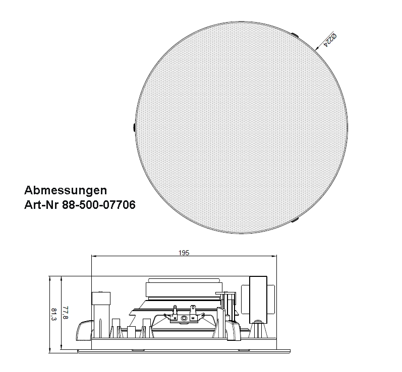 + Einbaudurchmesser: 195-200mm ( Auschnitt in Decke )
