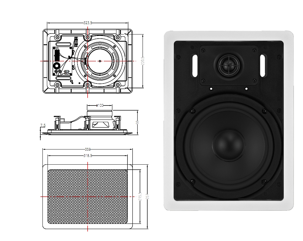 HiFi Deckenlautsprecher 2-Wege System mit Bass und integriertem Kalottenhochtöner. Einbaulautsprecher in einer quadratischen Einbauvariante in guter Ausführung. Rückseitig integrierte Frequenzweiche mit 200mm Bass und Kalottenhochtöner mit Titanbeschichtung Hi-Fi-Wand- und Deckenlautsprecher mit rückseitigem Schutzdeckel für offene Decken oder auch zur Unterputzmontage bestens geeignet in Wänden usw. Hochwertiges 2-wege-Koaxiallautsprechersystem mit sehr guten Klangeigenschaften. 20cm Tieftöner (8zoll) mit Glasfasermembran und 24mm Kalottenhochtöner ( 1zoll ) mit Titanmembran Kunststoff-Unterputzschale zum bündigen Einputzen in Wände oder Massivdecken Außenabmessungen : 248 x 248x 100mm Notwendiges Einbaumaß bzw. Mauerloch ca. 242 x 242 x 100 mm / 235 x 235 x 95mm Metallfrontgitter mit KunststoffrahmenenHi-Fi-Wand- und Deckenlautsprecher mit bis zu 60W Leistung an 8-Ohm Eine tolle 2-wege-Ausführung mit Kalottenhochtöner und integrierter Frequenzweiche Sehr kräftig klingendes System das der Tieftöner eine weiche Aufhängung hat. Brillantklare Hochtonwiedergabe durch den hochwertig verarbeitet Kalottenhochtöner Einbautiefe des Systems 95mm Technische Daten: Leistung max. 60 Watt bzw. 30 Watt rms Impedanz 8-Ohm Frequenzbereich: 70...20.000Hz Aussenabmessungen: L: 248mm B: 248mm Einbauabmessungen: L: 243mm B: 243mm ( siehe auch Zeichnung weitere Bilder ) Gesamttiefe mit Blende 95mm Farbe: Weiss Reinweiß Verpackungseinheit: Stück Bruttogewicht: 1,78 kg / Nettogewicht: 1,62 kg