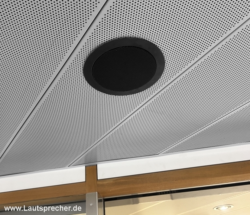 Deckenlautsprecher in Schwarz mit 230mm Durchmesser Passt zu jeder Einrichtung und Ausstattung. Dank der einfachen Schnellspann-Montage haben sich diese Lautsprechersysteme bestens bewährt. Aufgrund der 4 Spannzangen ( QuickMount System ) welche sich hinter dem Lautsprechergitter befinden, geht die Installation des spielend einfach von der Hand. Technische Daten: 1-wege System mit 165mm Breitbandlautsprecher ( 6,5zoll ) 100V Audio ELA Trafo integriert mit 3 Leistungsanzapfungen ABS-Kunststoffgehäuse mit abnehmbarem Metall-Schutzgitter Für Sprache und Hintergrundmusik im Innenbereich Eingangsspannung: 100V oder wenn 100V Audiotrafo entfernt wird Betrieb mit 4..8ohm Verstärker jederzeit möglich System 16,5 cm Breitbandlautsprecher (6,5") mit Hochtonkegel Nennleistung 5W rms / Musikpower 10W 100V Leistungsanzapfungen ( Lautstärkeanpassung ) 1,25W RMS (grün) 2,5W RMS (gelb) 5W RMS (rot) COM (schwarz) Empfindlichkeit bei 1W-1m 90dB Frequenzbereich: 100......10.000Hz Abmessungen: Durchmesser 230mm Bautiefe mit Fronttblende 70mm Bautiefe Rückseite 55mm ( siehe auch Zeichnung weitere Bilder ) Montageausschnitt: 195mm Durchmesser Gewicht: 760g Versandgewicht: 0,84 kg Zusatzinfo : selber Typ .. Modell auch in Weiss erhältlich = Bst Nr 88-500-01775