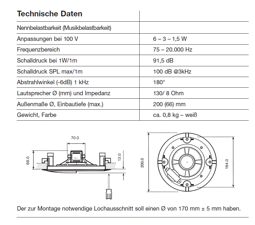 - Einbaudurchmesser 164mm ( 170mm +/-5mm )