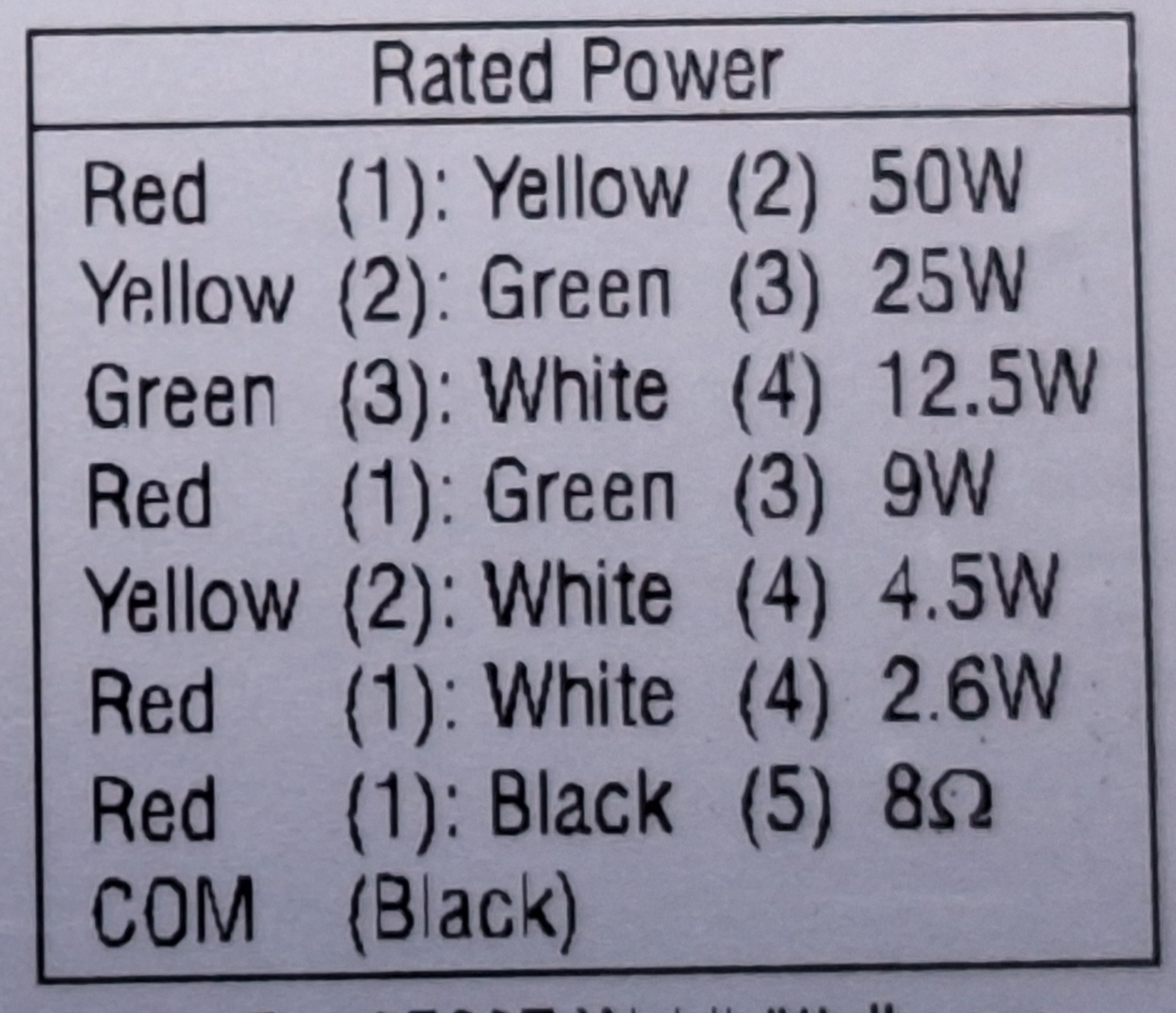 - RMS Klemmen: 50W / 25W / 12,5W / 9W / 4,5W / 3,5W