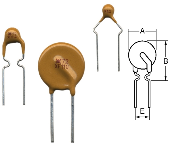 0,9A = 900mA Polyswitch Polyfuse Schutzelement Universell verwendbar für Netzteile, Stromversorgung, Motoren, Platinen usw. Ideal auch als Lautsprecherschutz wird auch zum Schutz bis ca 100W für Hoch- und Mitteltonlautsprecher auch verwendet Das Schutzelement Lautsprecher Schutzelement wird zum Schutz für Hoch- und Mitteltonlautsprecher verwendet. Es wird zwischen der Frequenzweiche und dem zu schützenden Lautsprecher geschaltet und reagiert bei Überstrom sprungartig hochohmig. Durch dieses Verhalten wird der Strom in der Schwingspule auf einen kleinen Wert begrenzt. Bei kleiner Leistung versetzt sich das Schutzelement wieder in seinen Normalzustand, wodurch kein Austausch nötig ist. Alle Leistungsangaben in Watt sind angegeben in Verbindung mit der Frequenzweiche und beschreiben die Belastbarkeit des Lautsprechers. Körper aus Polymer PTC, kleine Bauform selbständig rücksetzende Sicherungsbauelemente geringe Verlustleistung durch geringen Widerstand im Normalbetrieb Schutz gegen Überstrom und Kurzschluss von Geräten... Baugruppen... Stromversorgung ... Lautsprechern usw. Das Polyswitch-Bauelement auf Polymerbasis ist ein selbstrückstellendes Sicherungselement. Die Wirkungsweise begründet sich auf den PTC-Effekt. Im Normalbetrieb ist der Widerstand des PolySwitch-Bauelementes sehr gering, so dass nur geringe Leistungsverluste auftreten. Im Fehlerfall, z. B. Kurzschluss oder Überstrom, erhöht sich der Widerstandswert dieses Bauteils und schützt das Gerät, Baugruppe oder auch Lautsprecher. Nach Beseitigung des Fehlers und abgeschalteter Versorgungsspannung, kehrt das PolySwitch-Bauelement schnell in seinen niederohmigen Zustand zurück Technische Daten: Polyswitch Fuse Sicherungen Ausrichtung radial kleine Bauform zum verlöten selbstständig rücksetzende Sicherung geringe Verlustleistung durch geringen Widerstand im Normalbetrieb Betriebstemperatur -40 °C ... + 85 °C Anwendung: Lautsprecher, Stromversorgung, Motoren, Lautsprecher uvwm. bis zu einer Maximalspannung von 72V eff Auslösestrom = 0,90A = 900mA Abschaltkurve / Auslösekurve = K ( siehe Tabelle = weitere Bilder typisch Time to Rip max 7,2-Sek. oder kürzer je nach Stromanstieg ) Widerstandswert ca. 0,20-ohm ca 0,31 Ohm (nach ca 1 h) bei Auslösung entsprechend hochhohmig Abmessungen Durchmesser: 11,2mm ( A max ) Bauhöhe bis Knick in Beine max 15,8mm ( B max ) Ratermaß : RM 5,08mm ( E max )