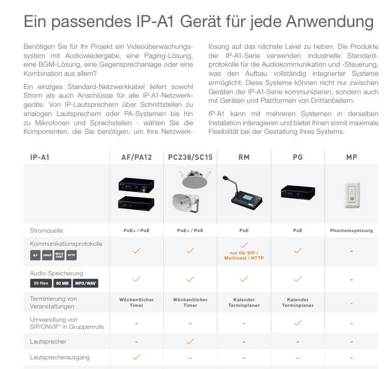 - System-Stummschaltfunktion zum Stummschalten aller Geräte der IP-A1-Serie im Netzwerk