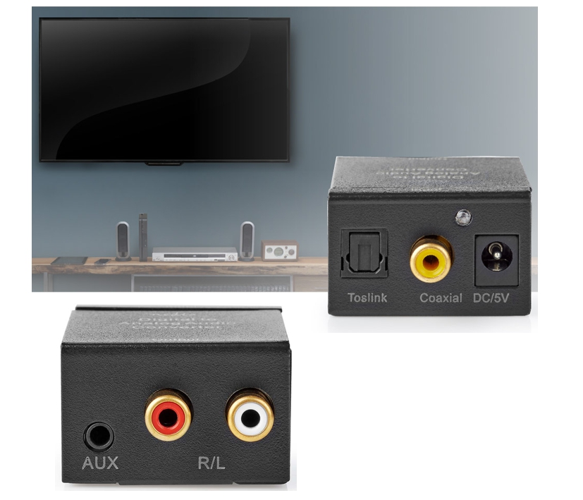 Digital Wandler für Audio ( Ton ) Wandelt digitale TosLink( z.B. vom TV-Gerät ) oder Cinch ( SPDIF RCA ) also digitale Audiosignale in analoge Stereo-Audiosignale um