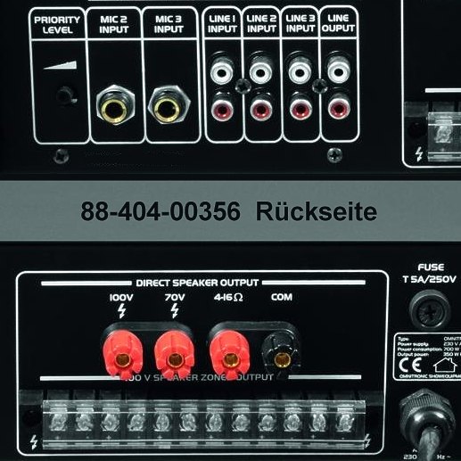 - 1x Verstärker 450Watt Nr.: 88-404-00356 ( mit 6-Zonenschalter mit 100V Ausgang + 4-8ohm Ausgang )